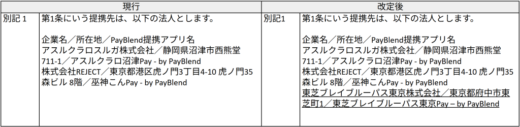 以下の通り、PayBlend提携アプリに関する特約を改定いたします。